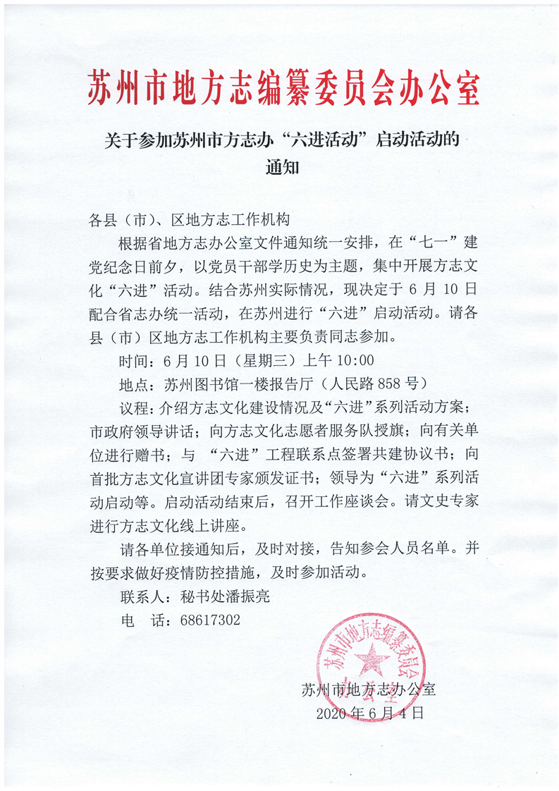 关于参加k8凯发官网入口市方志办“六进活动”启动活动的通知