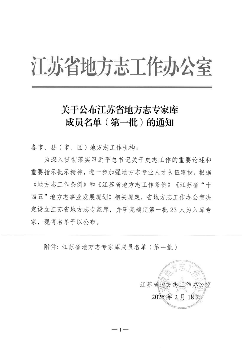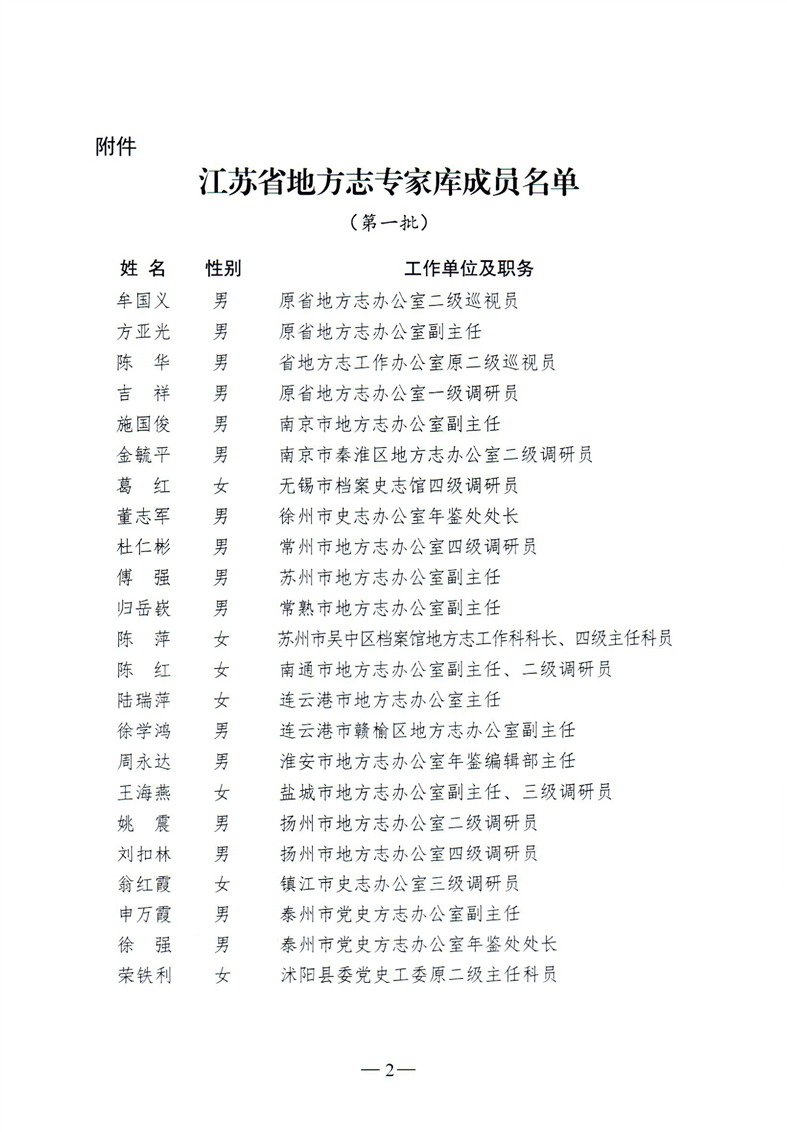关于公布江苏省地方志专家库成员名单(第一批)的通知
