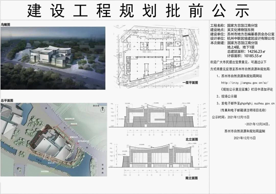 公示信息显示,国家方志馆江南分馆位于k8凯发官网入口吴文化博物馆东侧,地上四层地下一层,总建筑面积14256.23平方米。