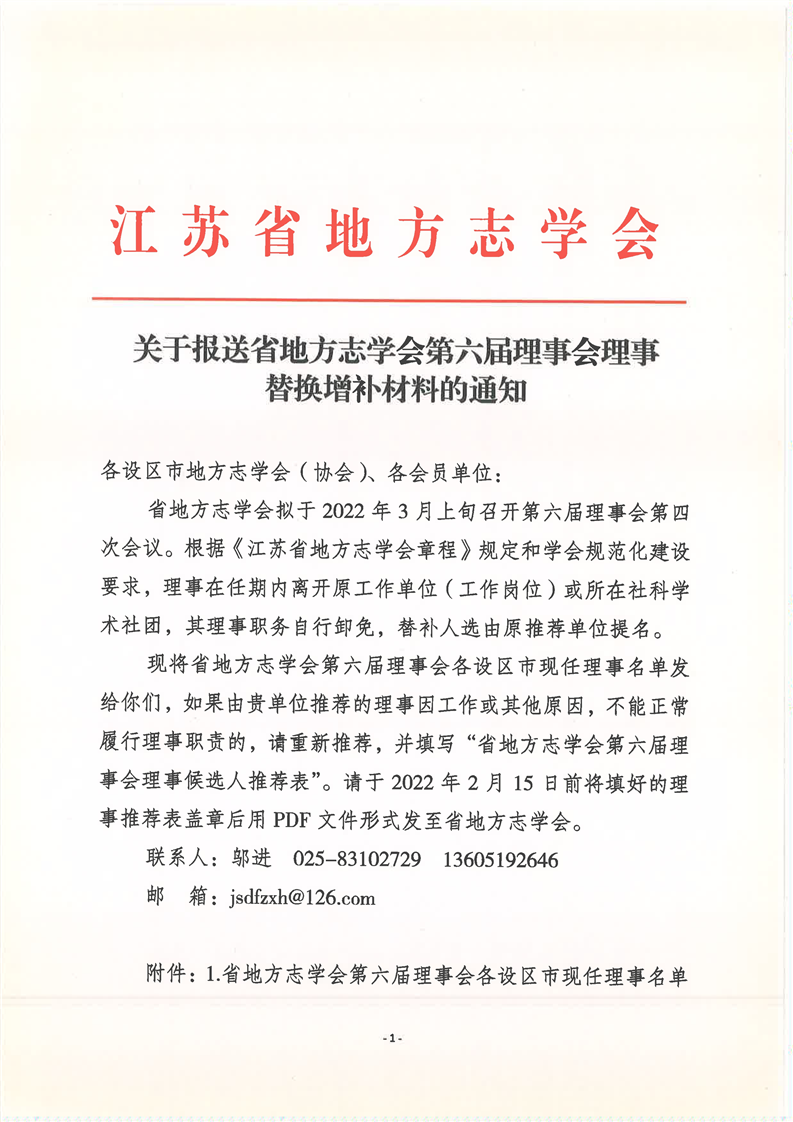 关于报送省地方志学会第六届理事会理事替换增补材料的通知