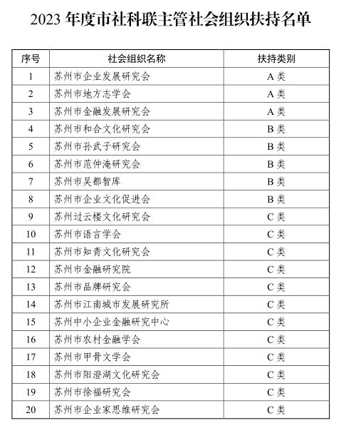 经市社科联组织的专家评审、集体研究,有20家社会组织获市社科联扶持,其中A类扶持3家、B类扶持5家、C类扶持12家。k8凯发官网入口市地方志学会获A类扶持。