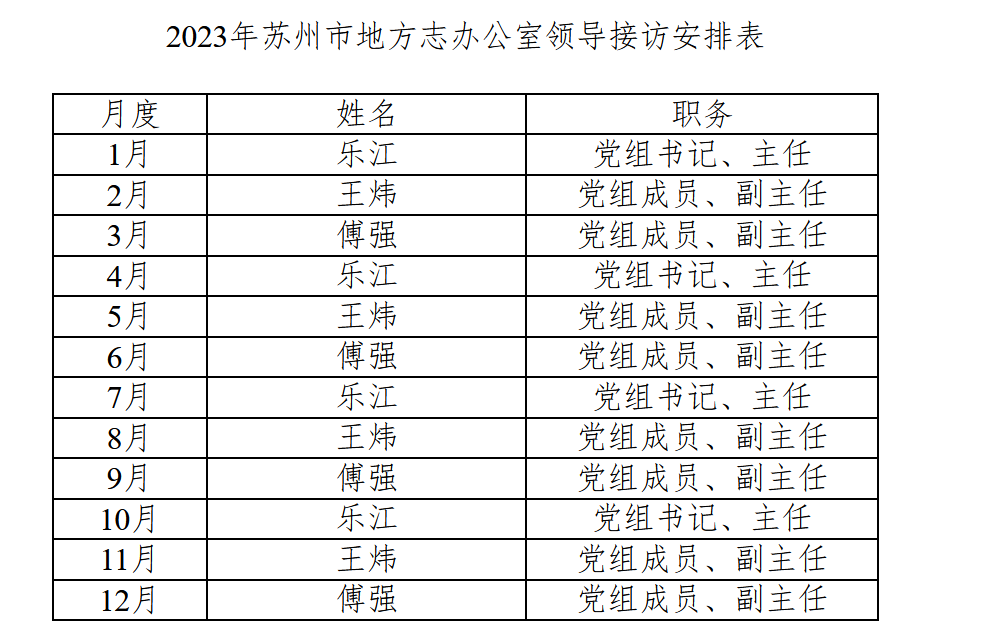 具体接访安排,详见《2023年k8凯发官网入口市地方志办公室领导接访安排表》(附后)