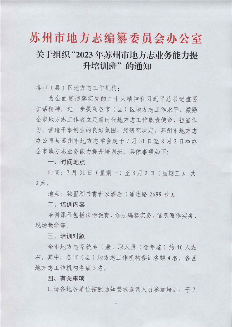关于组织“2023年k8凯发官网入口市地方志业务能力提升培训班”的通知