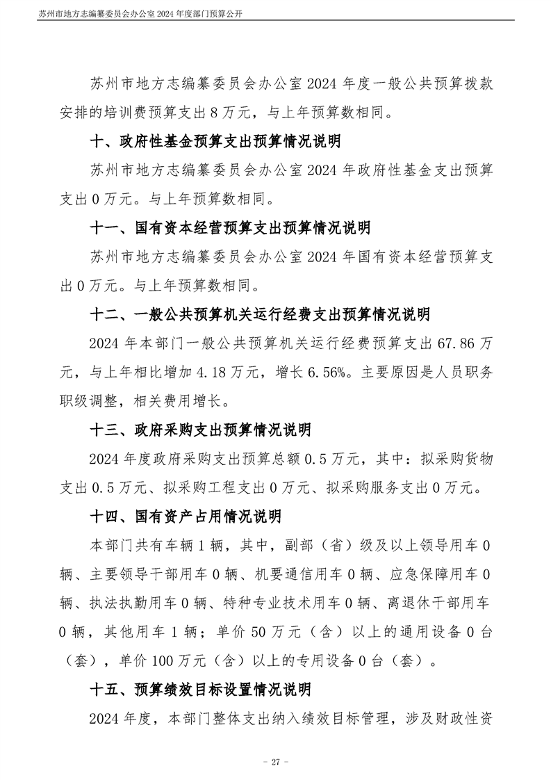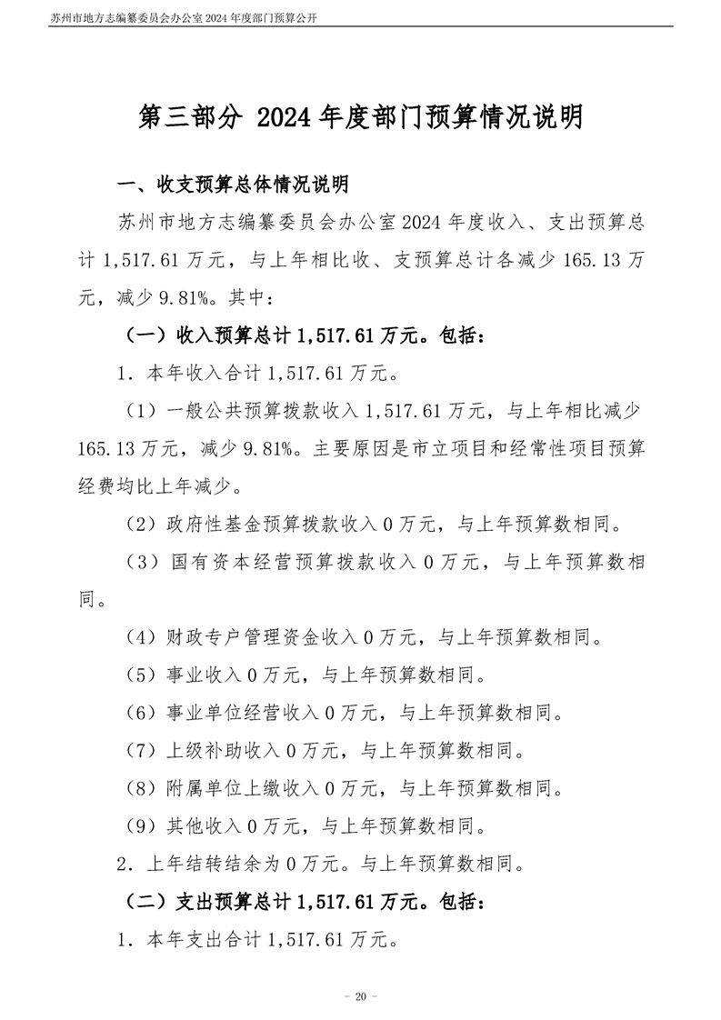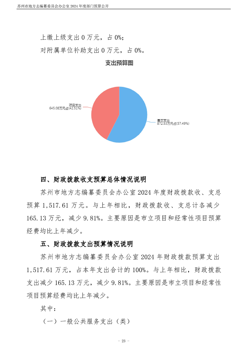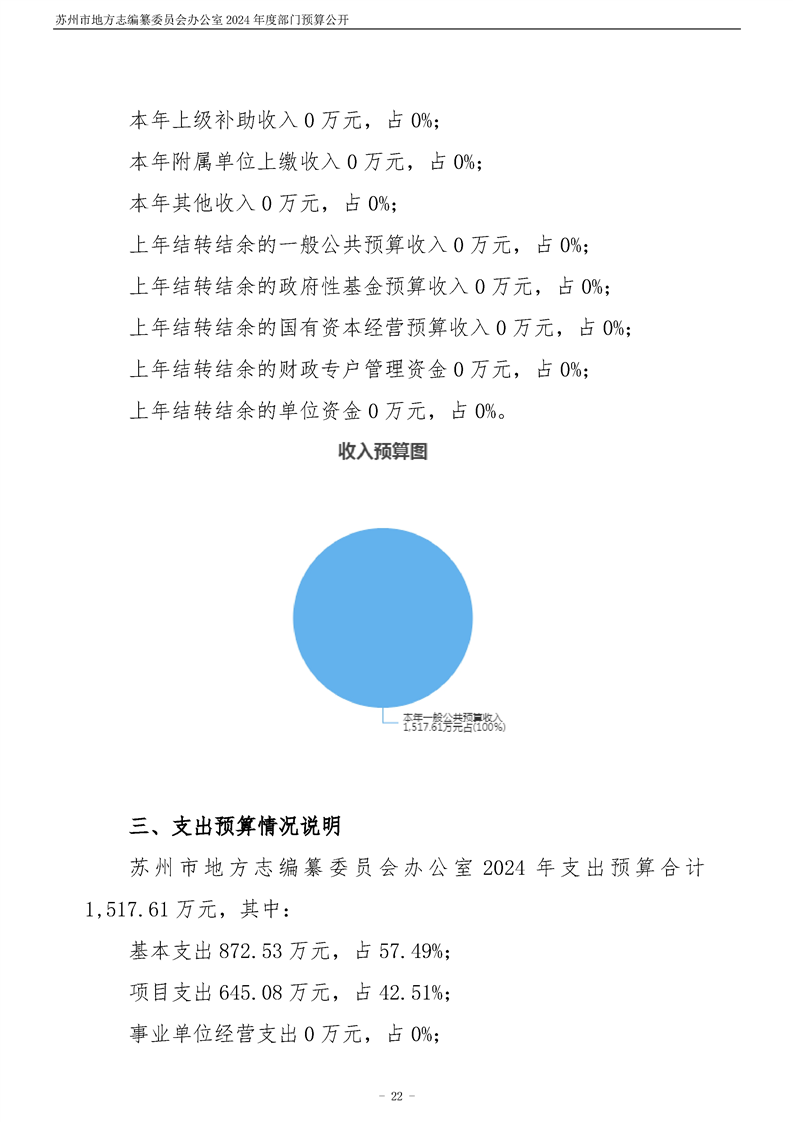 2024年度k8凯发官网入口市地方志编纂委员会办公室部门预算公开