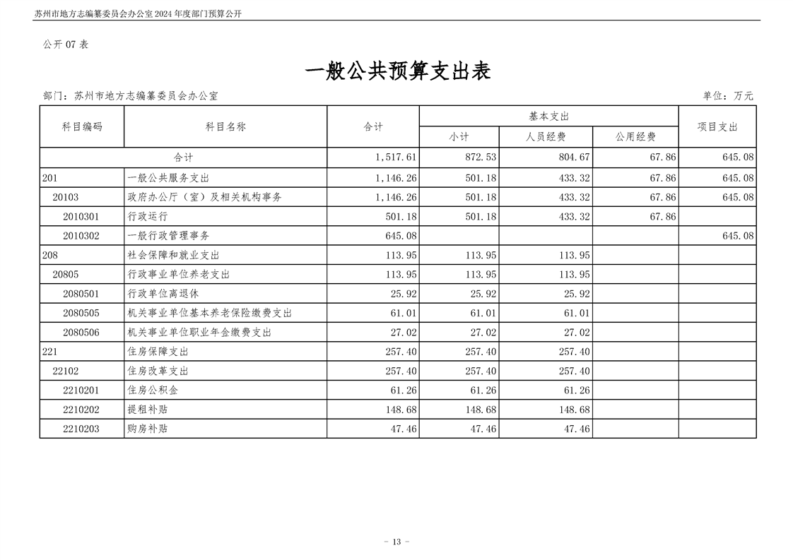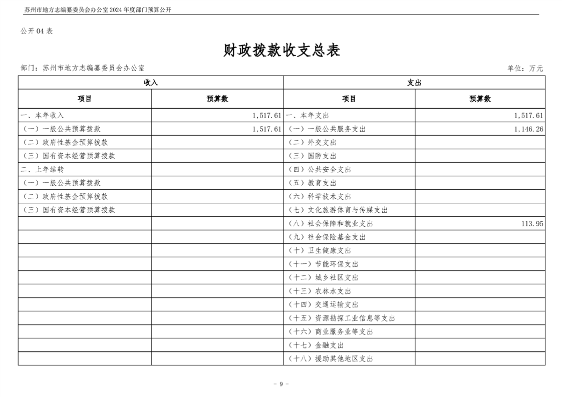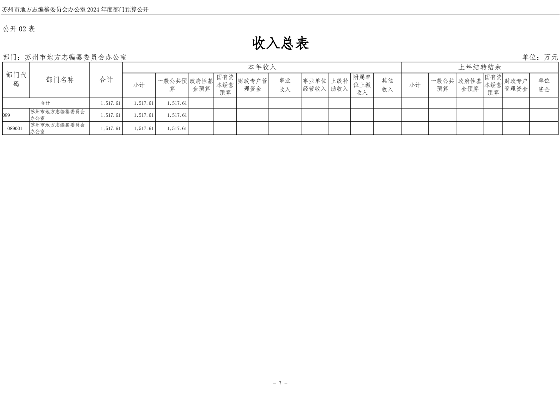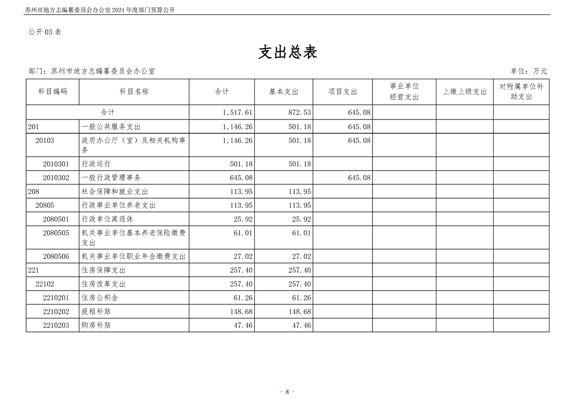 2024年度k8凯发官网入口市地方志编纂委员会办公室部门预算公开