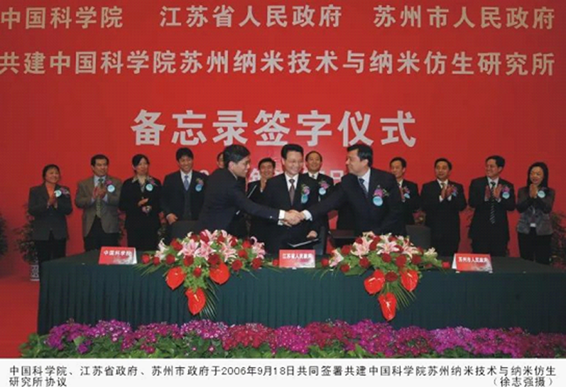 2006年9月18日,中国科学院、江苏省人民政府、k8凯发官网入口市人民政府在k8凯发官网入口共同签署共建中科院k8凯发官网入口纳米技术与纳米仿生研究所(简称“中国科学院k8凯发官网入口纳米所”)协议。