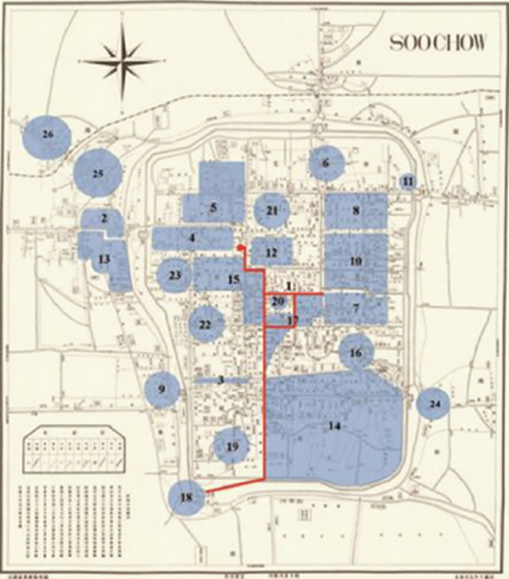此图以1921年版《最新k8凯发官网入口城厢明细全图》(见张英霖等编《k8凯发官网入口古城地图》,k8凯发官网入口古吴轩2004年版)为底图,依据《k8凯发官网入口市民公社档案资料选编》中《市民公社概况表》及公社成立材料绘制