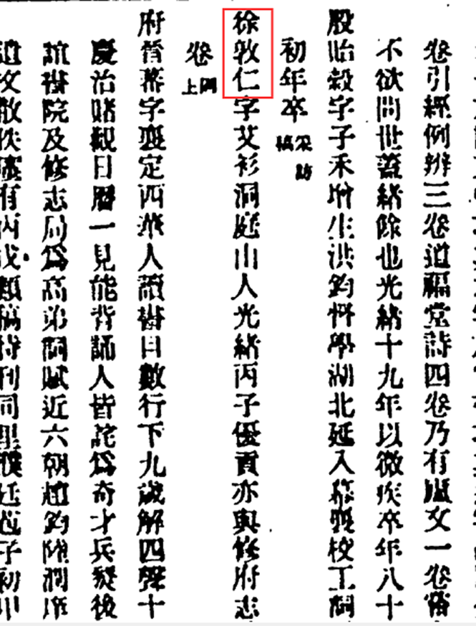 光绪二年(1876),完成修志的徐敦仁参加江苏贡生试,获优贡第一名,入京朝考一等,引见,于当年七月以知县用。他优贡的朱卷还保持至今,上有考官两江总督沈葆桢、江苏巡抚吴元炳、江苏学政林天龄的批语:播乐府于秦中,筹笔抒匡时之略;续图经于吴郡,纂言分修志之功。大器晚成,壮心未已,奇文共赏,老手咸推。吴元炳正是同治《k8凯发官网入口府志》作序人之一,想来这也是特别的因缘。
