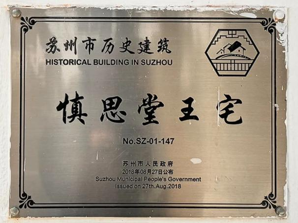 慎思堂王宅位于十全街737号,是王颂蔚堂弟王颂彬的故居,它位于怀厚堂王颂蔚宅之西,两宅交相辉映,共谱姑苏王氏家族的文脉。