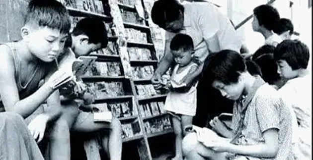那时我们的学习负担比较轻,大约下午三点多钟就放学了,又没有什么回家作业,那个年代没有电视、网络、游戏机,看电影也只能偶尔为之,孩子们要么结伴玩游戏,要么就去小书摊,花几分钱租几本自己喜爱看的小书,笃笃定定地坐在那儿看上几个小时,有时看得很晚,要不是小肚皮“叽里咕噜”抗议,真想不起来要回家吃夜饭。是小书摊使我成为了一个喜欢读书的人,后来又爱上写作,这就需要我读更多书,常常是手不释卷,怪不得少时母亲常说我是“书蠹头”!